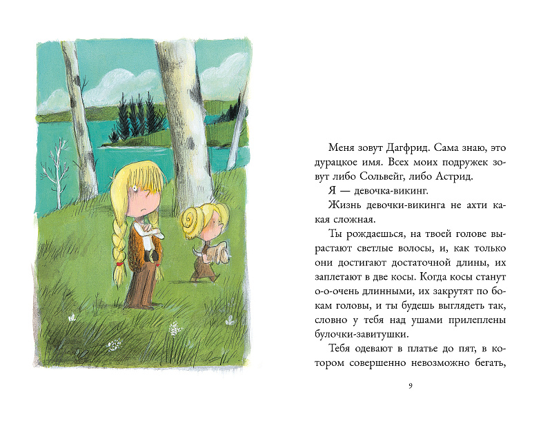 Да и в остальном участь девочки-викинга счастливой не назовёшь: приходится заплетать волосы в косы и укладывать их в завитушки над ушами, носить платья до пят и вялить рыбу, единственную пищу викингов. А ещё девочкам не разрешают выходить в море и открывать Америку! Но вечно так продолжаться не могло. Настал день, когда рыба вконец опротивела Дагфрид...