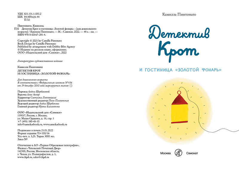 <p> Нелегко каждый день работать частным сыщиком и разоблачать преступников. Отдыхать от дел тоже нужно! Оскар, знаменитый Детектив Крот, проводит отпуск в фешенебельной гостинице «Золотой фонарь». </p> <p> Но и здесь ему нет покоя! Посреди ночи совершается кража, а преступника след простыл. Кто вор? Как его поймать? Детектив Крот не может остаться в стороне и берётся за новое дело. </p> <p> Серия книг про незадачливого, но очень целеустремлённого Детектива Крота получила продолжение! Бывший шеф-повар крот Оскар нашёл своё истинное призвание и теперь раскрывает преступления. </p> <h2>5 причин купить книгу «Детектив Крот и гостиница «Золотой фонарь»:</h2> <ul> <li> <p> Продолжение детективной деятельности Крота Оскара, который нашел в себе смелость кардинально сменить профессию — из шеф-повара в частные сыщики. А кем хочешь быть ты, когда вырастешь? </p> </li> <li> <p> Не просто чтение, а интерактивно-детективный квест по поиску преступника — его можно устроить даже дома; </p> </li> <li> <p> Забавные иллюстрации, смешной сюжет и курьёзные ситуации, в которые попадают герои, увлекают даже взрослых и искушённых читателей, что уж говорить о юных детективах! </p> </li> <li> <p> Подходит для первого чтения; </p> </li> <li> <p> Новые Шерлок Холмс и доктор Ватсон: самоуверенный, но безнадежно неспособный сыщик и сообразительный помощник, которого никто не понимает. </p> </li> </ul>