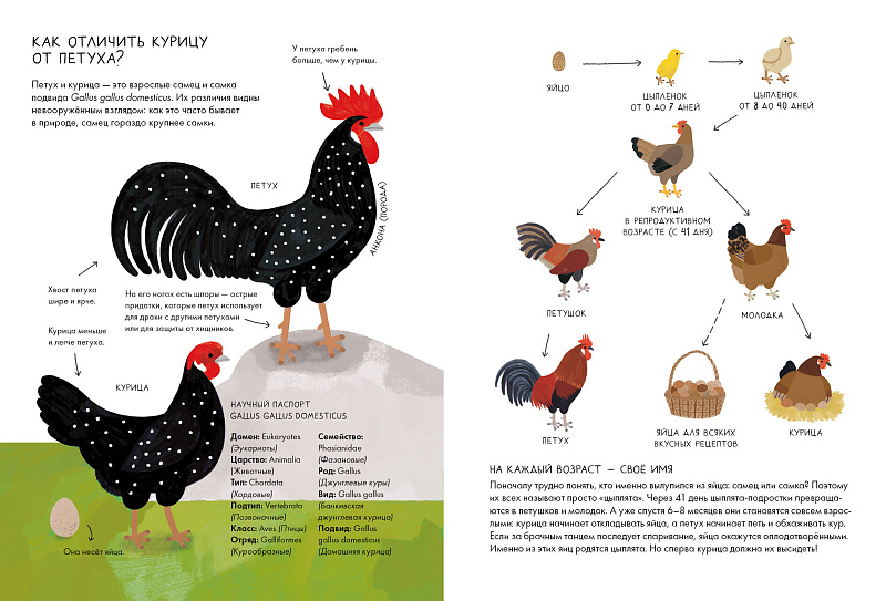 • Эта книга — праздник многообразия! У куриц разные характеры и поведение, внутри только одной породы может быть десяток окрасов, а уж сколько пород во всем мире – около 300!