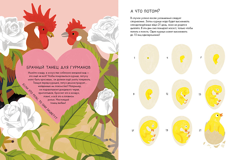 Так что же появилось первым — курица или яйцо? И почему куры не умеют летать? Из всех ли яиц вылупятся цыплята? А вы знали, что существует 300 пород кур и что петухи не только поют, но ещё и танцуют? В этой энциклопедии мир цыплят, кур и петухов предстанет перед читателем во всей своей пернатой красе! От истории и анатомии кур до основ куриного языка и советов по уходу за цыплятами, — «Курицеведение» полно неожиданных фактов. Неважно — живете вы в городе или деревне, чудесные иллюстрации Камиллы Пинтонато точно превратят вас в фаната кур, ведь книга переведена уже на 7 языков. Возможно, вы даже захотите вырастить пару цыплят у себя в квартире!