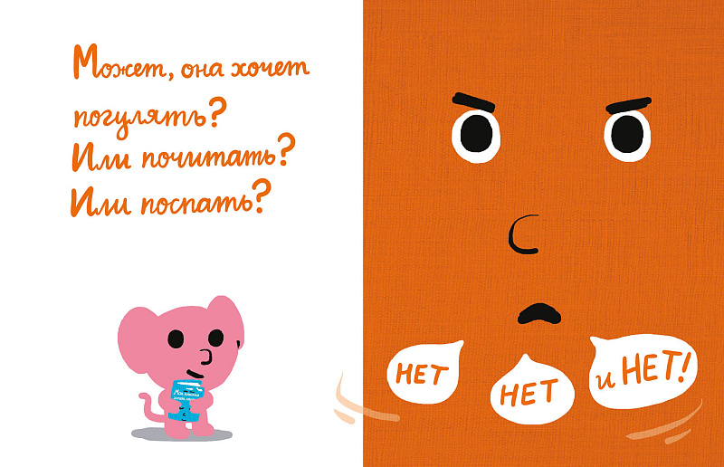 Что делать, когда на любое, даже самое приятное предложение хочется крикнуть «НЕТ»? Мышонок мудр и терпелив, и ещё он понимает главное: в таких случаях спорить бесполезно. Быть рядом и не злиться в ответ – вот что помогает вывести книжку из исступления. Это прекрасно работает и с детьми, и со взрослыми – проверено!