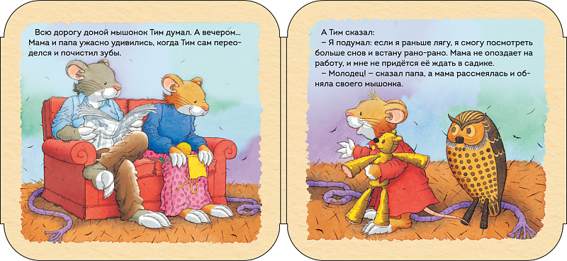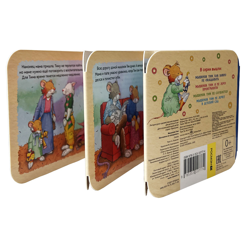 <p> Книги о мышонке Тиме помогут вашему малышу: </p> <ul> <li>понимать, признавать и называть свои чувства</li> <li>общаться со сверстниками и взрослыми</li> <li>успокаиваться перед сном и сосредотачиваться</li> <li>справляться с трудными ситуациями</li> </ul> <p> Сегодня утром мышонок Тим совсем не сразу вылез из теплой постельки. Доедать завтрак он тоже не спешил. А после еды вдобавок взялся за игрушки. Но ведь его ждут в детском саду! У них сегодня экскурсия!.. Почему же так важно делать все дела вовремя? Скоро мышонок Тим узнает об этом и больше никогда не будет опаздывать. </p>
