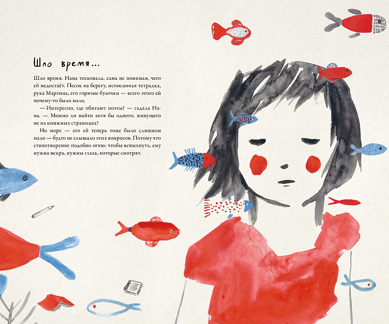 <p> Нана родилась на острове, на берегу моря, и задавала вопросы, на которые никто не мог ответить. Её глаза видели больше, чем глаза других, и Нане приходилось записывать увиденное, чтобы оно не ускользало, будто песок сквозь пальцы. </p> <p> История о том, как рождаются поэзия и любовь. </p> <p> Нежность, облеченная в слова и иллюстрации. Книга, которую нашептало море. Книга-сокровище, которой можно поделиться лишь с родственной душой. Книга-шпаргалка, которая научит понимать, о чём толкуют земля и вода. Книга-искра, способная помочь вспыхнуть огню поэзии. Всем фантазерам, выдумщикам и тонко чувствующим натурам посвящается. </p> <p> Произведение удостоено специального упоминания в категории «Поэзия» на Болонской книжной ярмарке (Bologna Ragazzi Awards) в 2022 году. </p>