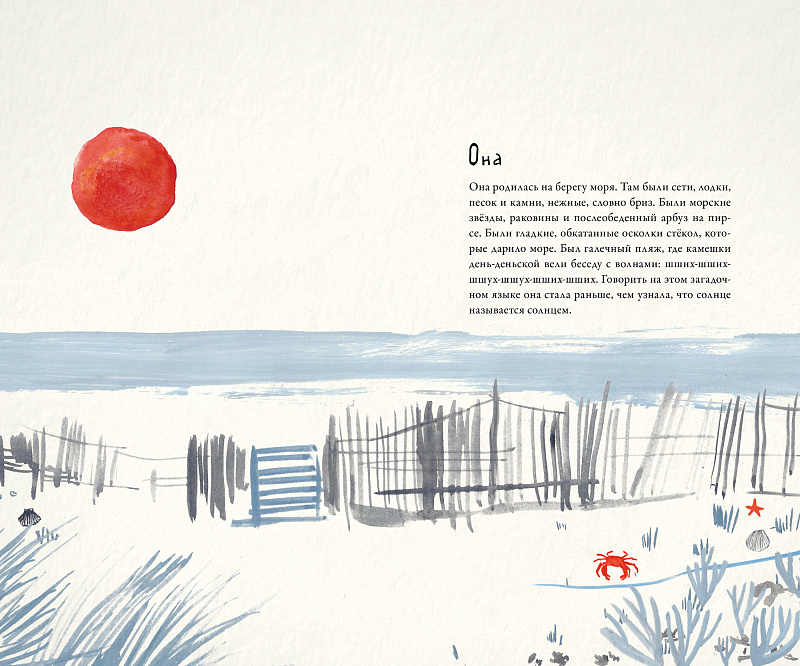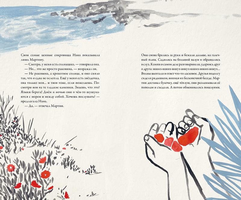Нежность, облеченная в слова и иллюстрации. Книга, которую нашептало море. Книга-сокровище, которой можно поделиться лишь с родственной душой. Книга-шпаргалка, которая научит понимать, о чём толкуют земля и вода. Книга-искра, способная помочь вспыхнуть огню поэзии. Всем фантазерам, выдумщикам и тонко чувствующим натурам посвящается.