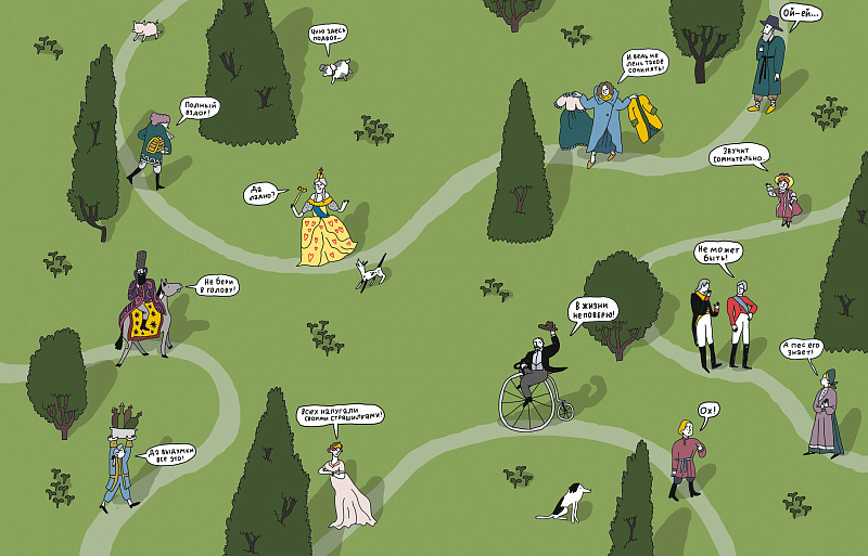 Картинки нарисовала Катя Гущина, художница из Нижнего Новгорода. Книга рассказывает историю не только через текст, но и через объёмные иллюстрации с тысячами важными деталей: одеждой, едой, зданиями, балами и совещаниями — рассматривая быт Российской империи, каждый раз можно замечать что-то новое;