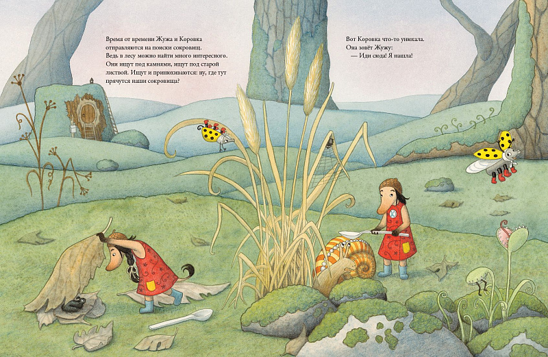 Собралась уже целая компания искателей сокровищ: Жужа с Коровкой, червяк с мокрицей, землеройки, жаба, крот... Чем дело кончится, отыщется потерянное сокровище или нет — увидим. Зато приключений точно хватит на всех!
