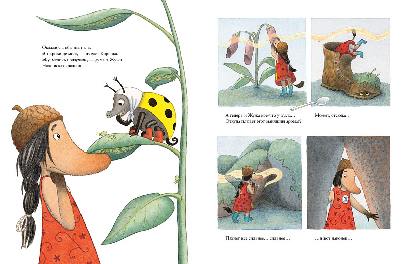 Мир Жужи и Коровки тёплый, уютный и безопасный, иллюстрации пропитаны солнечным светом. Незамысловатая добрая сказка, которая отлично подойдёт для семейного чтения тёмным осенним вечером.
